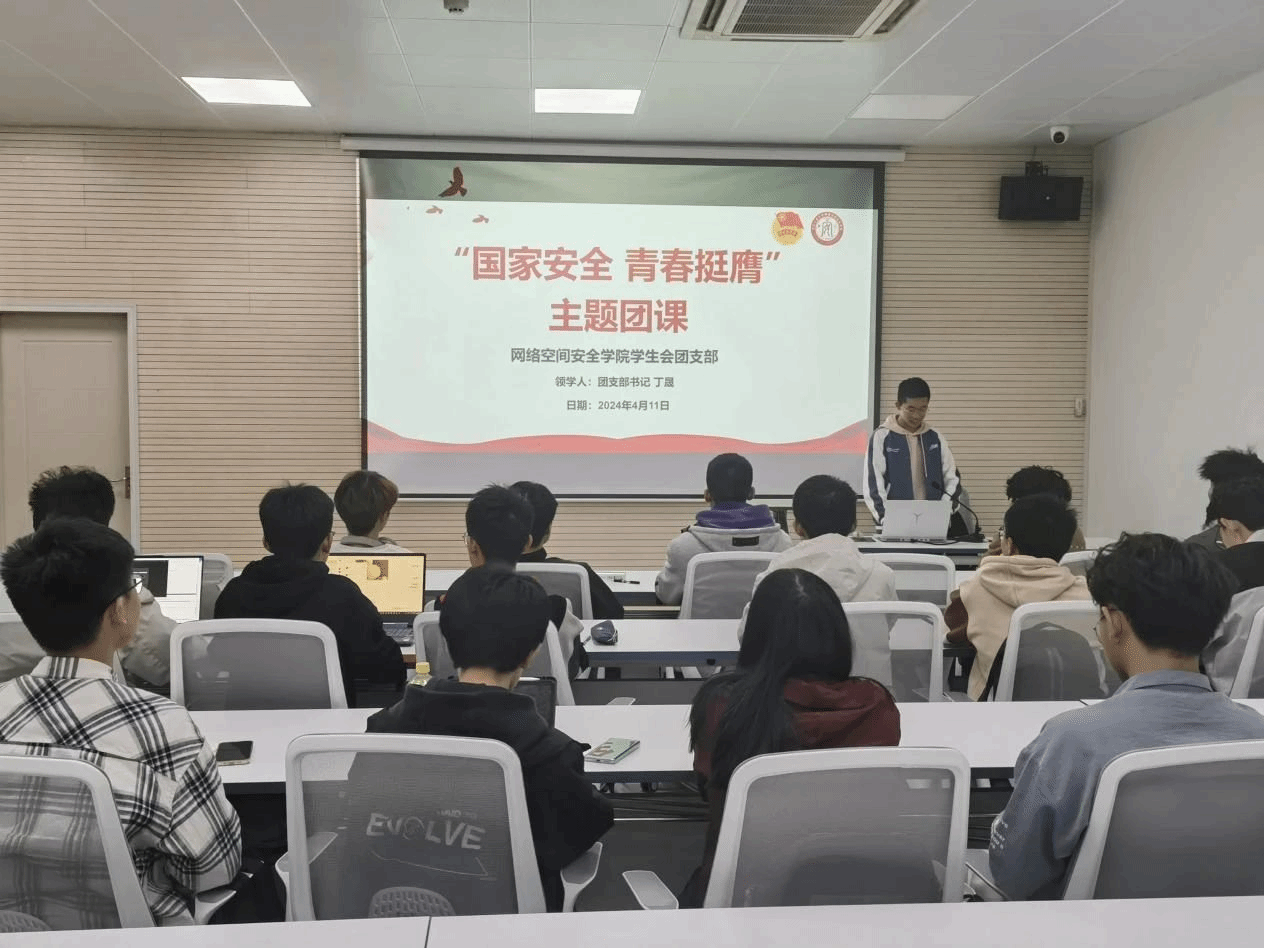 期间,丁晟带领大家学习了总体国家安全观的核心要义、五大要素和五对关系,帮助同学们理解和把握总体国家安全观。接着,丁晟介绍了国家安全观的定义,并激励网安学子应当承担维护国家安全的责任和使命,为祖国的“第五疆域”筑牢防线。最后,学生会团支部成员共同学习了全民安全教育大讲堂公开课。同学们纷纷发表了自己对于公开课的思考和感悟,只要人人投身其中,就必能筑起国家安全牢不可破的铜墙铁壁。