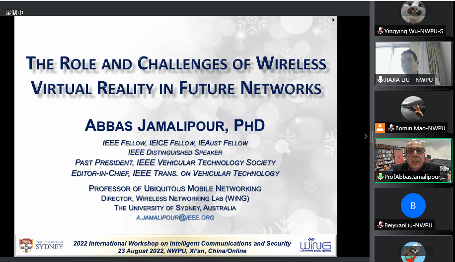 为拓宽我院师生学术视野、加强国际学术交流,学院在暑期邀请澳大利亚工程院院士Abbas Jamalipour教授,日本工程院院士NeiKato教授、IEEE会士BrunoClerckx教授等多位智能通信与安全领域国际知名专家,举办了智能通信与安全暑期院士会士系列高端学术报告。第一期报告会于8月23日举办,刘家佳副院长主持此次报告会,相关报告围绕6G时代智能通信关键技术、应用和安全问题展开,集前沿性、学术性和开放性于一体,所邀请的专家和我院师生在线上开展热烈的互动讨论,总观看人次超500人。