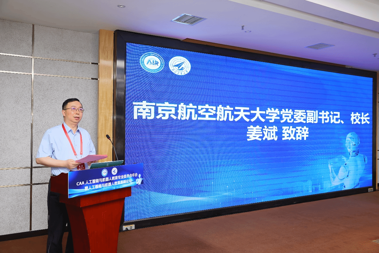 始终致力于推动人工智能与机器人技术在教育领域的发展。中国自动化学会副理事长王成红研究员随后致辞,他肯定了此次大会的重要性,并希望与会者通过交流分享,为人工智能和机器人教育领域带来更多创新和突破。南京航空航天大学党委副书记、校长姜斌教授也发表了热情洋溢的讲话,强调了人工智能与机器人技术在未来教育中的重要性。