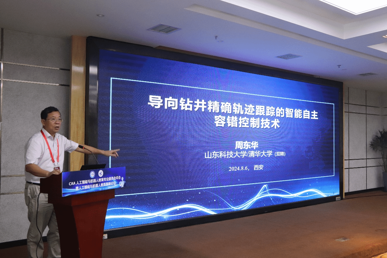 开幕式后,清华大学教授、山东科技大学党委常委、副校长周东华教授,香港科技大学(广州)协理副校长熊辉教授,清华大学教授、中国自动化学会常务理事孙富春教授,中国科学技术大学陈恩红教授,英国莱斯特大学周挥宇教授等5位国内外知名专家学者分别作大会主旨报告,内容涵盖容错控制、大模型、中国教育和生成式人工智能等前沿话题,全面展示了人工智能与机器人教育领域的最新进展和未来发展方向。