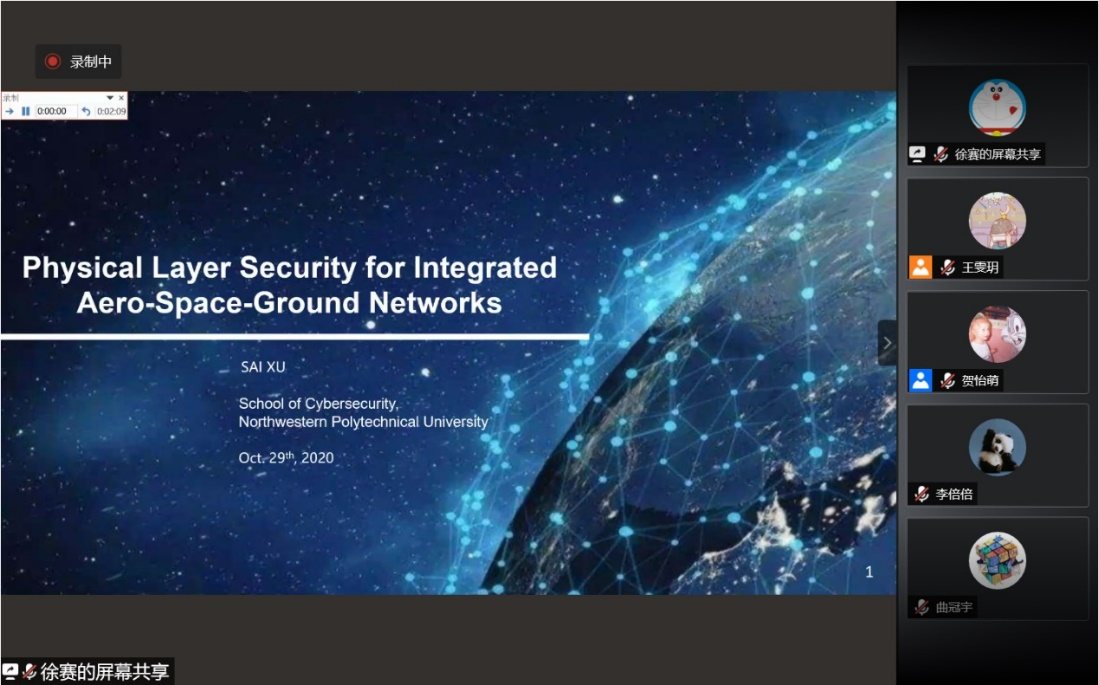 的于银菠副教授以Security and Reliability Analysis of Intent-driven NetWork Software System为主题、刘倍源副教授以CSI Correlation and Its Applications on Signal Processing和Interference Mitigation for Densely Deployed Automotive Radars为主题、金增旺副教授以State Estimate Fusion For Event-Triggered Networked Systems And Its Applications为主题、徐赛副教授以Physical Layer Security for Integrated Aero-Space-Ground Networks为主题、毕红亮老师以Research on IntelliSense technology of behavior analysis with wearable device为主题,来自西安电子科技大学的罗倩以Information Security and Privacy Protection of Mobile IntelligentTerminal为主题、史振江以Resource Optimization for Large Scale Internet of Things communications为主题、荀毅杰以Research On Driving Behavior Extraction And Application Of Intelligent And Connected Vehicles为主题分别作了学术报告,并与参会人员进行了学术讨论。