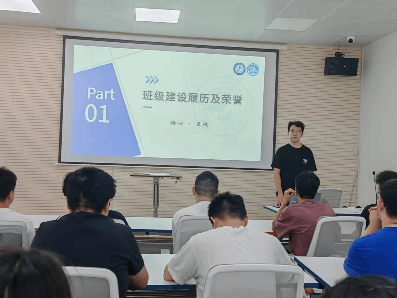 会议伊始,班长马君儒同学系统回顾了班级建设历程及取得的各项荣誉。在马君儒同学的深情讲述中,全体同学共同重温了那些奋勇争先的动人时刻——50班以坚定的决心和强大的凝聚力,在德智体美劳各个领域都绽放出绚丽的青春光彩。特别是在2024年班级风采展示大赛中,同学们团结协作、精益求精,最终勇夺院级一等奖,并荣获校级“最具潜力班级”称号。总结汇报结束后,同学们振奋鼓舞,现场响起热烈掌声。