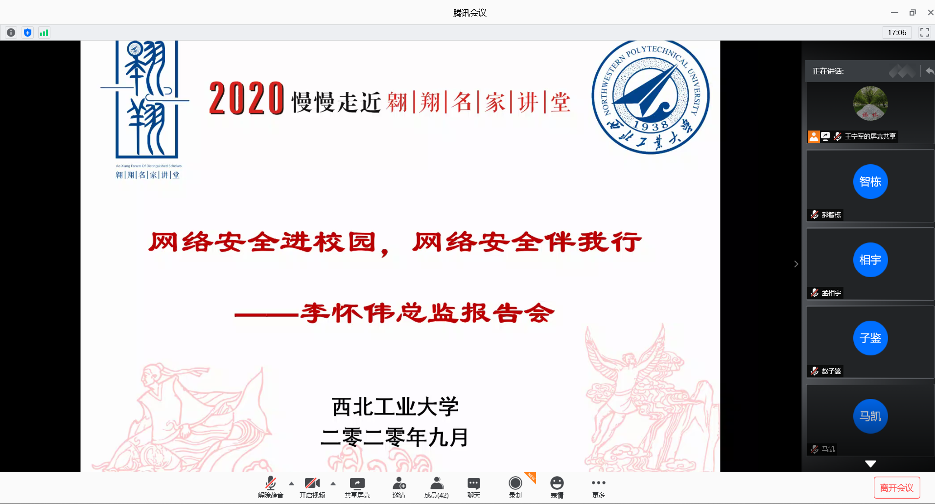 随着第七届国家网络安全宣传周的到来,9月16日下午,学校邀请奇安信集团教育行业部总监李怀伟作了一场题为“网络安全进校园,网络安全伴我行”的线上科普讲座,这是我校“翱翔名家讲堂”系列活动之一。报告会由党委学生工作部主办,厕所偷拍
