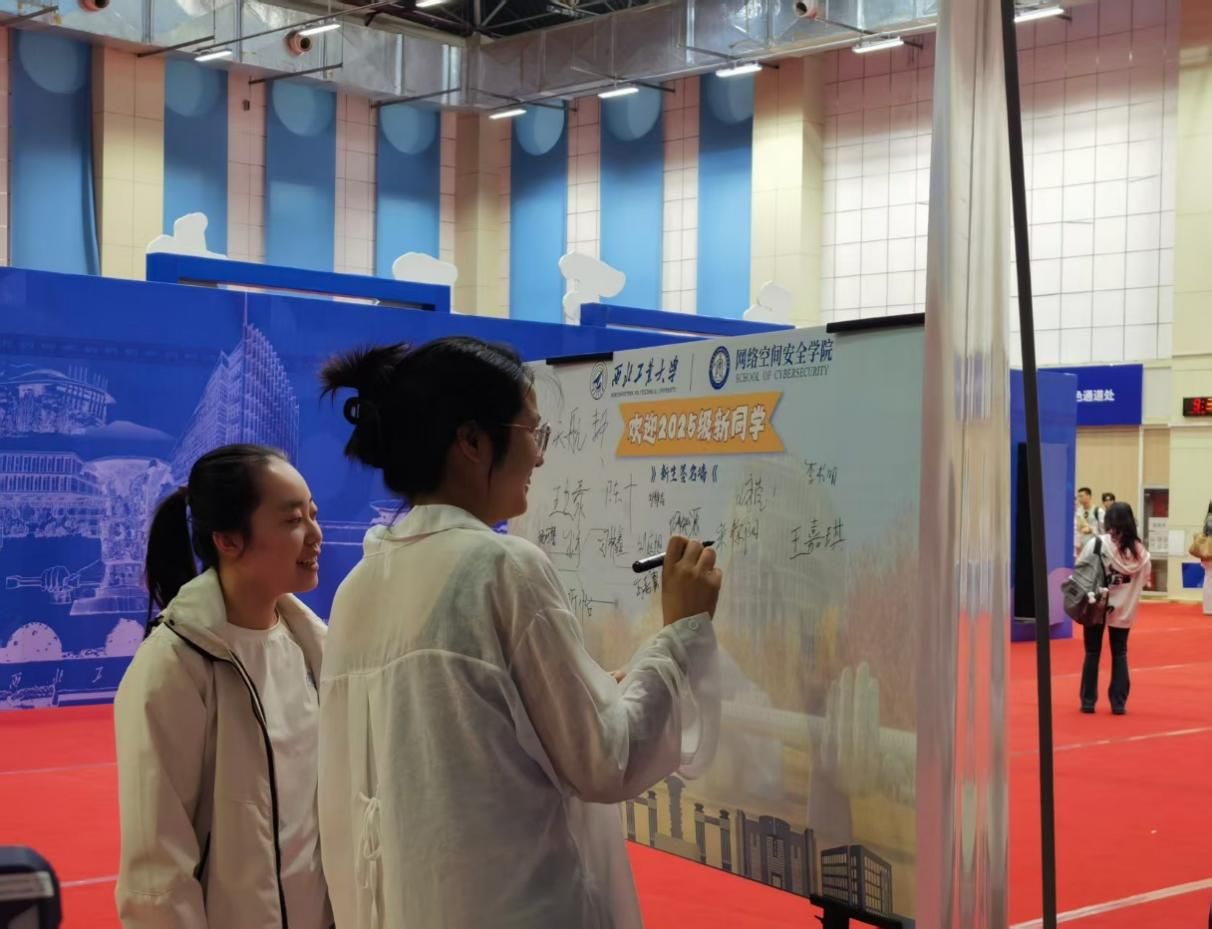 学院的党员先锋队、迎新工作人员和学生志愿者以饱满的热情耐心解答疑问,做好引导服务,确保每一位新生都能快速便捷地完成所有报到手续。同时,学院还为每一位研究生新生准备了文化衫以及融入了网络安全特色元素的新生礼物,寄托了对新生们未来成为数字世界坚强守护者的殷切期望。