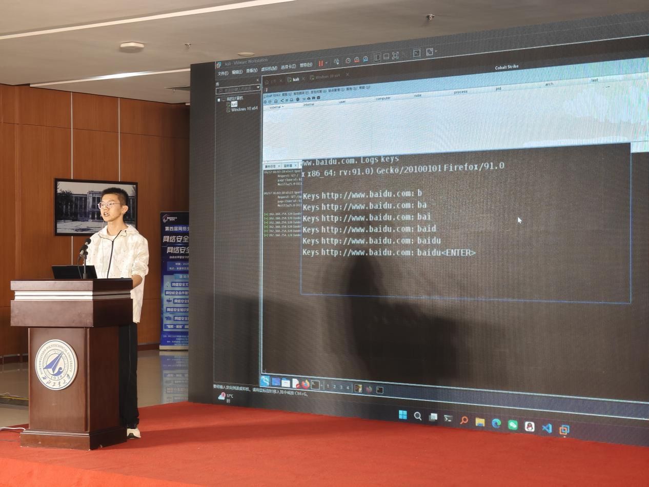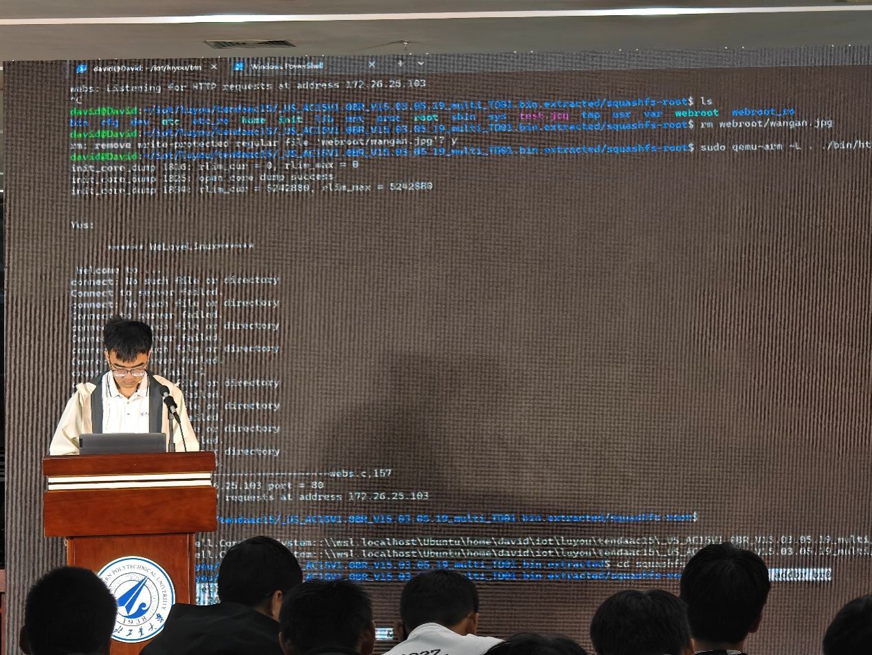 互动表演环节,由马君儒同学与王少君同学主持,紧张刺激的技术展示与互动解密依次上演。首先,厕所偷拍 学生信息安全协会副会长、网络空间安全大学生创新实践基地成员薛沛元为同学们演示了钓鱼网站技术,大屏幕上,以假乱真的钓鱼网站和欺骗性极强的钓鱼邮件呈现在同学们眼前;接着,协会会长、基地成员周子博进行了路由器攻防演练,终端上跳动的字母汇聚成路由器界面上被替换的图片,技术的魅力与网络安全的重要意义被生动诠释。