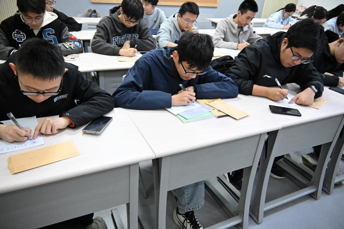 班会现场,笔墨生香,情谊流动。同学们时而沉思,将千头万绪凝练成几行文字;时而奋笔疾书,与未来的自己畅谈理想;时而又会心一笑,为未来的自己写下真挚的祝福。