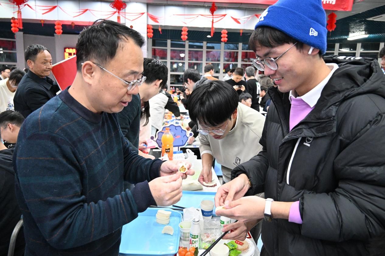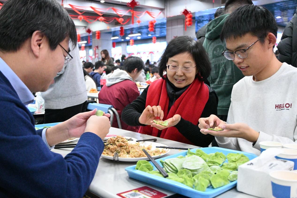 班子和师生代表齐聚一堂,在欢声笑语中同包团圆味。
