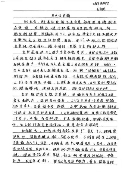 一场场接地气的宣讲,一次次心贴心的交流,换来的是群众的认可与自身的成长。系列反诈宣讲活动获得了属地社区、合作院校的高度肯定,实践队累计收到社区、学校发来的感谢信、表扬信多封;在小学开展专题宣讲期间,更收获了小学生亲笔书写的反诈感悟手写信,一字一句间,既是反诈知识入脑入心的生动印证,也是对队员们青春志愿行动的最好回馈。