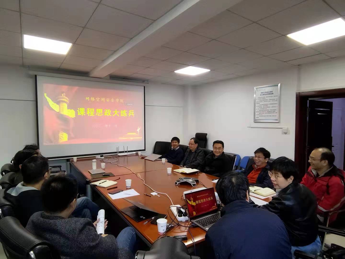 本次大练兵活动采用现场展示的形式,各参赛教师结合专业、课程特点精心设计了教学环节和课程思政的融入点。郭鸿志老师就《网络空间安全导论》课程的相关知识点,采用图片、视频等方式,结合时政,讲述了当今世界信息安全严峻的形势;曹国彦老师将《保密行政管理与工作制度》课程内容仔细拆解,将知识点与思政与国家制度相融合,概述了自己的授课思路;胡伟老师深度挖掘出与《密码学》课程相关的人物与事件,与知识点相结合讲述了祖冲之、王小云等代表性人物的故事,通过CRYPTO、ZUC等事件讲述关键技术的重要性。