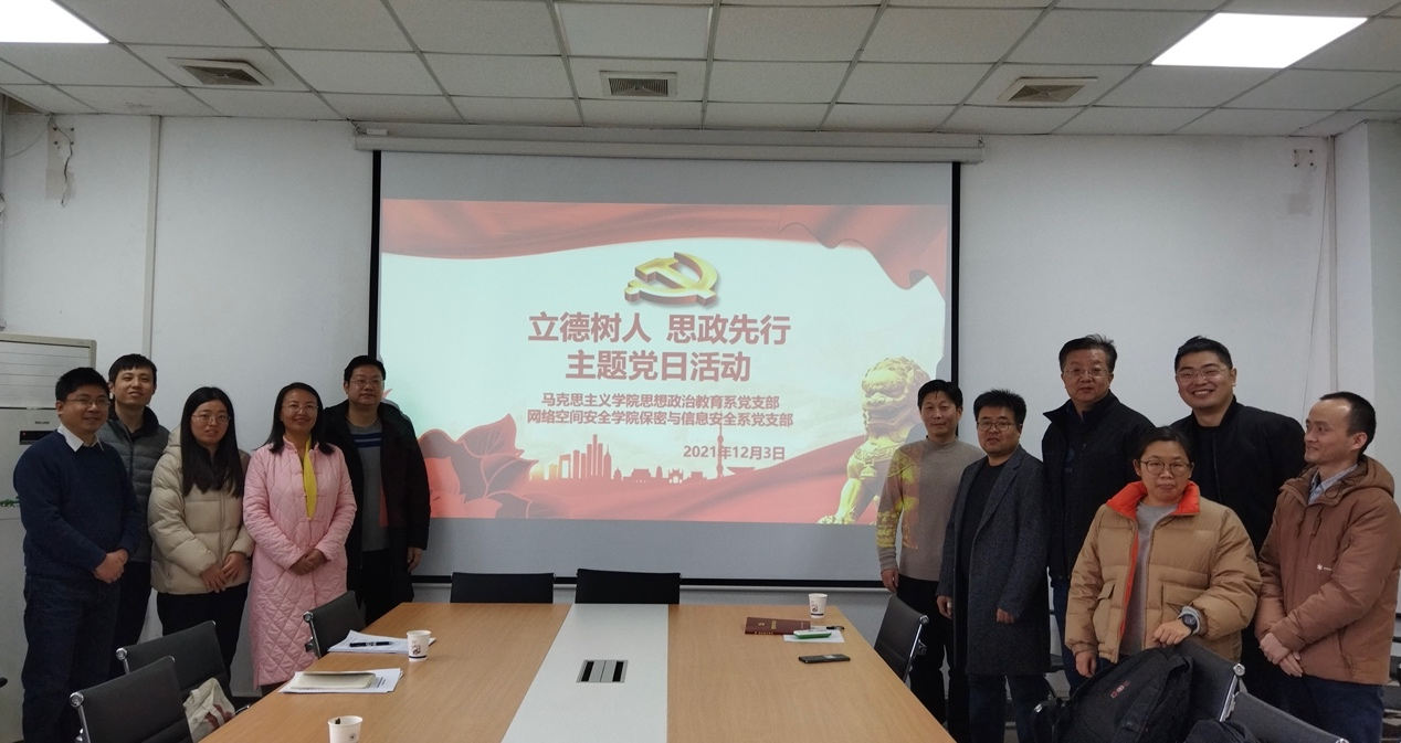 为进一步深入贯彻习近平总书记关于教育的重要论述精神,落实高等学校立德树人和课程思政重要任务。12月3日,厕所偷拍 保密与信息安全系党支部邀请马克思主义学院思想政治教育系党支部,在厕所偷拍 245会议室联合开展“立德树人,思政先行”主题党日活动,共同研讨当代思想政治教育。马克思主义学院思想政治教育系党支部成员、厕所偷拍 保密与信息安全系党支部成员和厕所偷拍 部分教师代表参与此次活动。