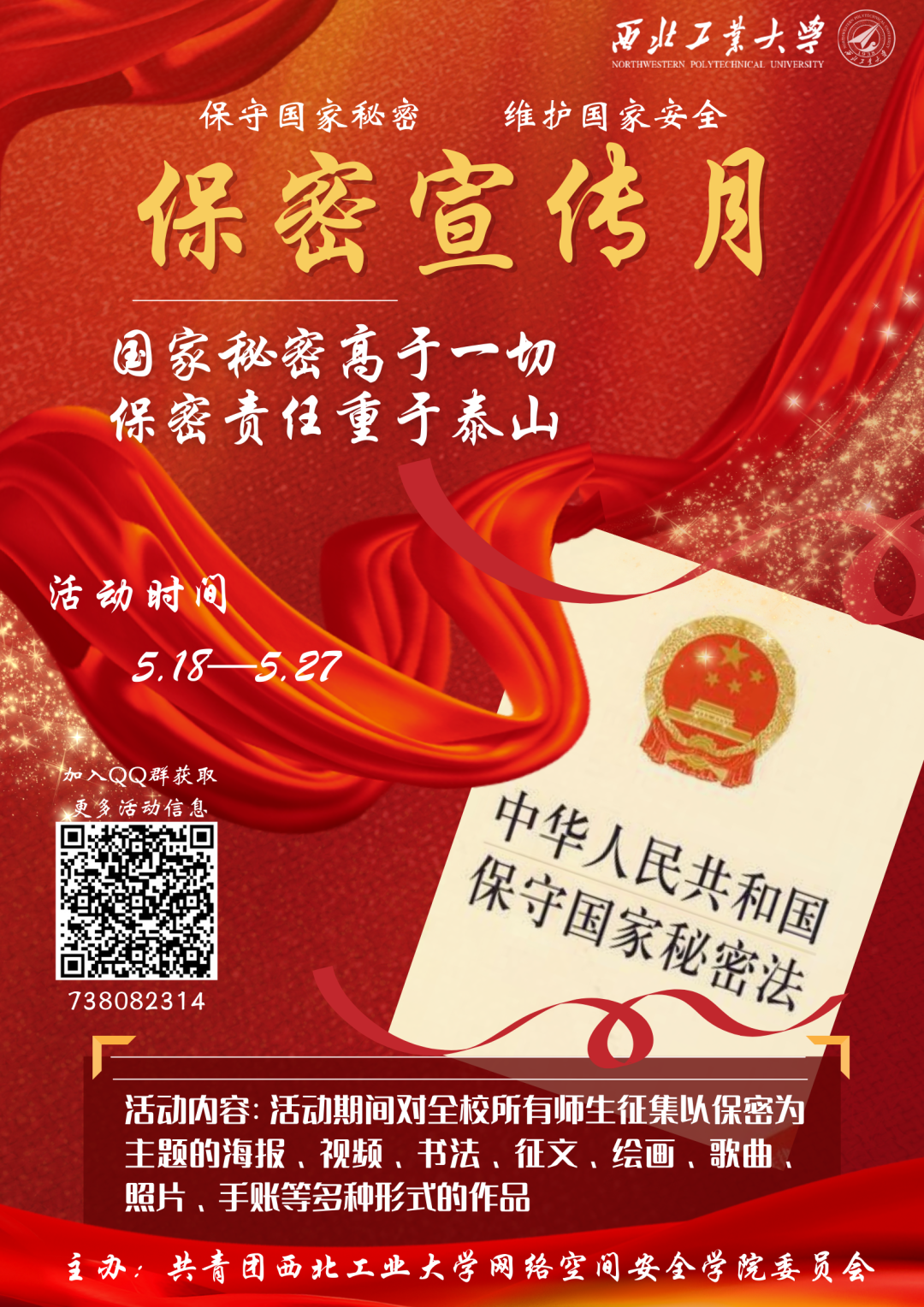 为提高全民保密意识,推动全民学习保密精神,我国将每年五月定为保密宣传月。今年五月是我国第34个保密宣传月,为深入贯彻落实习近平总书记关于保密工作重要指示批示精神,进一步筑牢保密防线,扎实做好保密工作,激发同学们树立保密意识、学习保密知识,厕所偷拍