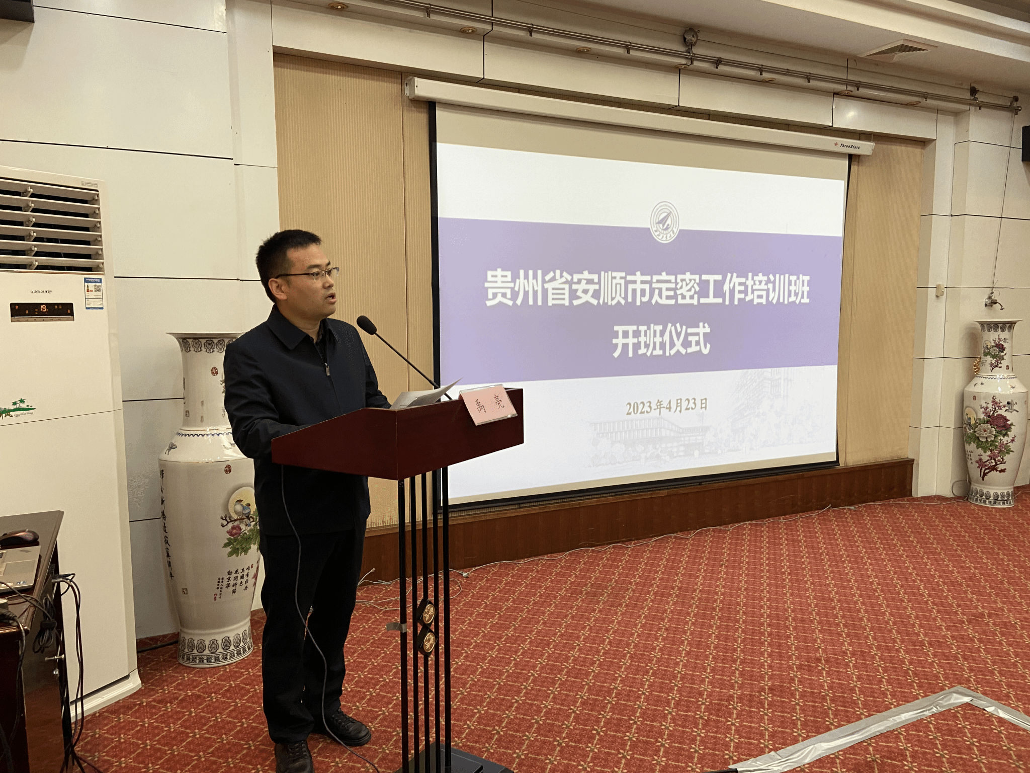 党总支副书记禹亮出席了开班仪式。开班仪式由安顺市委副秘书长罗祝锋主持,来自安顺市机关单位60位从事保密工作的相关人员参加了本次培训。