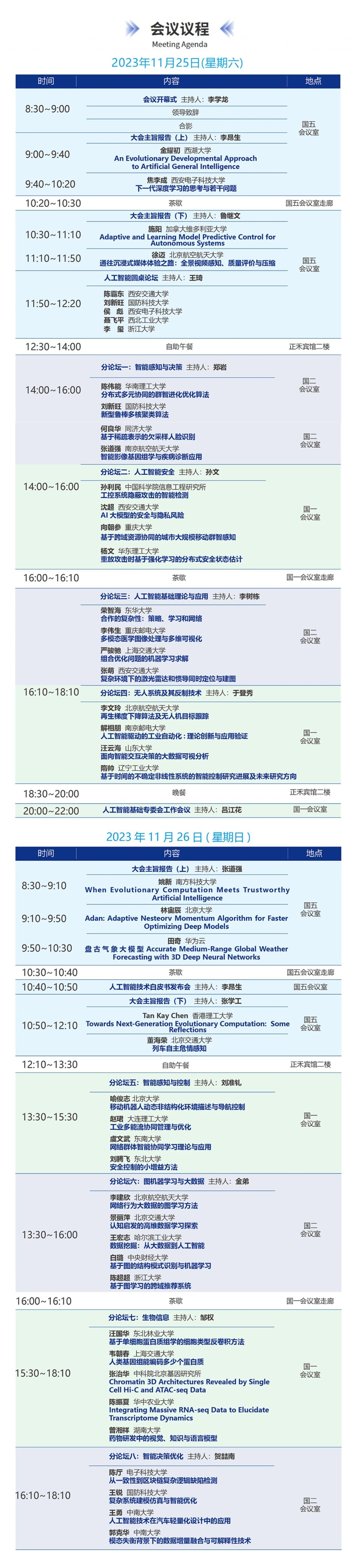 此次年会邀请国内外院士、知名专家学者做精彩报告,将分四个专题探讨人工智能基础领域最新的研究成果、前沿思维和创新技术,并召开《人工智能原理白皮书》发布会。同时,拟定于2023年11月25日晚召开中国人工智能学会人工智能基础专委会工作会议,专委会委员。工作会议将总结交流专委会在学术交流、科研合作、产学研转化等各方面的工作进展以及专委会发展情况。以持续推动人工智能基础领域的学术研究、技术突破、人才培养和成果落地。