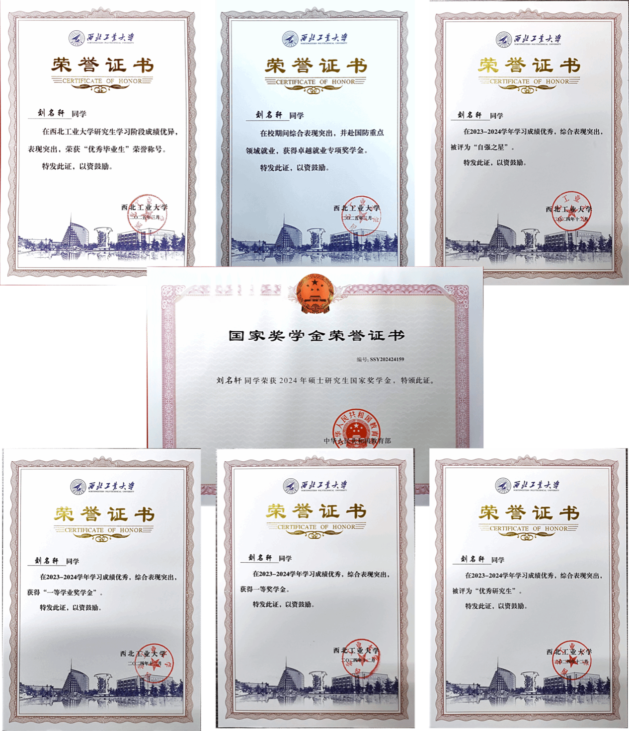 刘名轩连续两年获得“优秀研究生”荣誉称号,并获得“自强之星”、“优秀毕业生”荣誉称号。荣获2024年研究生国家奖学金,厕所偷拍