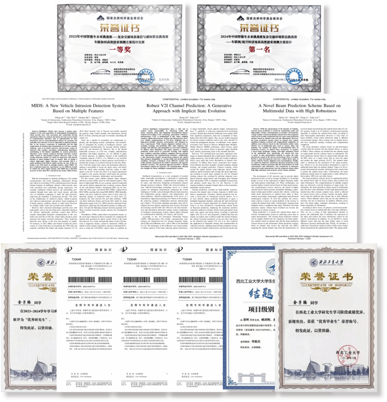 金子腾在研究生期间展现了卓越的创新精神和进取心。连续两年斩获国家自然科学基金委主办的中国智能车未来挑战赛第一名,赛事获央视报道。发表国际高水平学术论文3篇,申请发明专利3项。指导本科生参与大学生创新创业项目,获评国家级并结题。获学业一等奖学金、优秀研究生、优秀毕业生等5项荣誉奖励。
