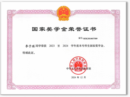 连续两年获国家奖学金