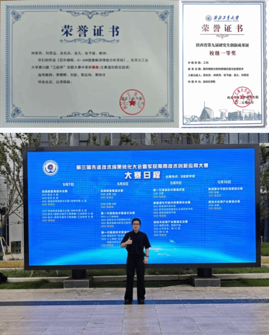 第23届“三航杯”创新大赛主赛道银奖、陕西省第九届研究生创新成果展一等奖。