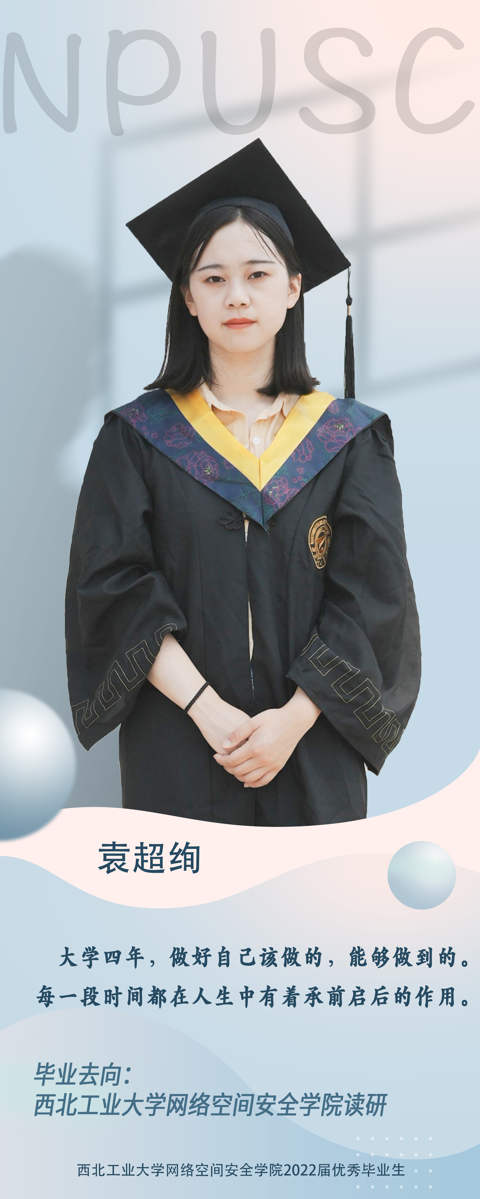 学院2018级本科生袁超绚,连续四年担任班级心理委员;曾获三次院优秀学生奖学金;获得陕西高校第十二次大学生高等数学竞赛二等奖,第一届厕所偷拍 太仓杯二等奖,第十四届全国大学生信息安全竞赛三等奖;大四时参加厕所偷拍 研究生招生考试以专业第一名被录取。