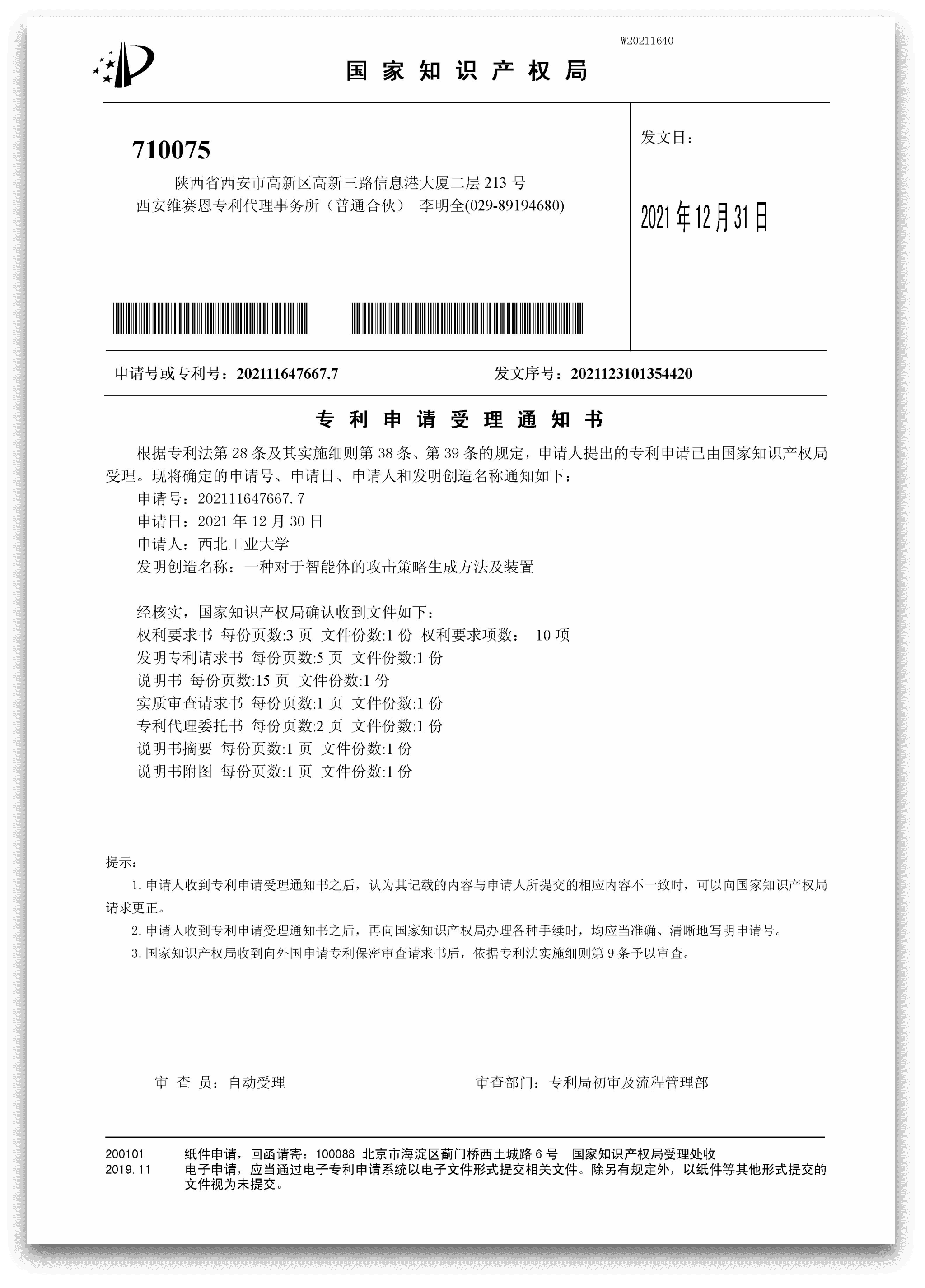 研究生会主席团成员、网安学院学生第四党支部副书记兼组织委员。研究方向为深度强化学习算法的脆弱性与鲁棒性,硕士期间以第一作者发表高水平论文2篇,申请发明专利1项,作为项目负责人主持校内基金项目2项,获国家奖学金等各类奖学金7次,获优秀研究生等荣誉称号5次,参加“互联网+”等各类竞赛获奖5次。 |