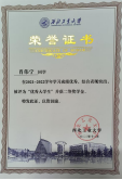 。曾获优秀大学生、学业先进个人、优秀班干部等个人荣誉称号6项。曾获大创优秀结题1项,信息安全作品赛三等奖1项,申请软著1项。