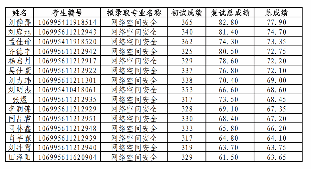 经过学院招生工作小组和学校研究生招生办审核,现将我院2025年硕士研究生调剂拟录取名单公示,公示时间为7日。