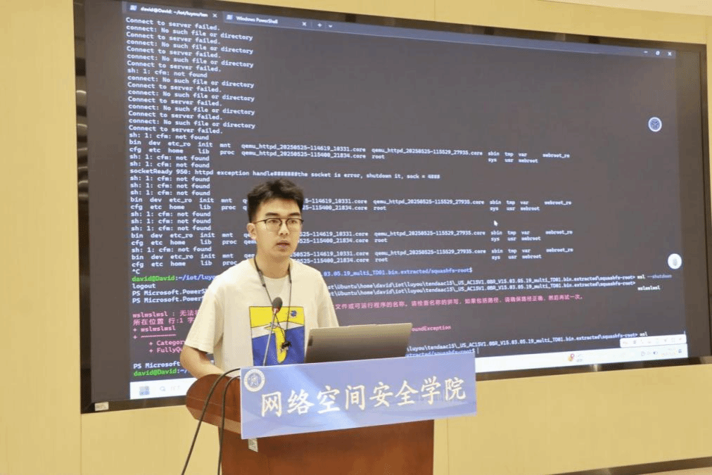 学生信息安全协会会长周子博为同学们进行了生动刺激的路由器攻防演示,形象地展示了网络漏洞的隐秘性、危险性以及网络安全的重要作用。