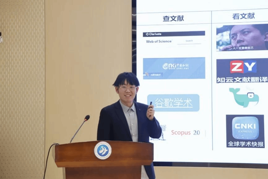 优秀研究生标兵获得者贾犇由第五疆域的概念着手,幽默风趣而不失严谨的介绍了自己,拉近了与参会同学的距离。对于大学生时常面对的精神内耗和学习方法问题,贾犇用逻辑严密的论证、生活化的例证,结合实际地为同学们分享了自己的见解。科研方面,通过讲述科研中的小发现转化为论文的全过程,贾犇鼓励同学们把生活中的发现融入科研,大胆迈出第一步。