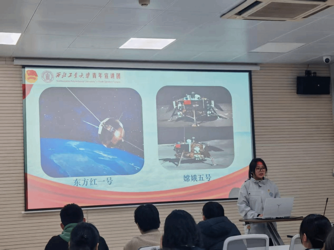 会议伊始,来自青年宣讲团的戴衍华同学为大家带来了一场生动的主题宣讲。戴衍华以王伟的故事拉开序幕,讲述了王伟烈士在捍卫祖国领空时的英勇无畏与坚定信念,接着介绍了我国如今蓬勃发展的航天事业,从东方红一号到嫦娥五号,展现了我国在航天科技方面的雄厚实力与不懈追求。随后,戴衍华深入解读了我校第十四次党代会的主题与精神内涵,强调全面贯彻新时代党的教育方针,锚定“天下工大、世界三航”远景奋斗目标,是我们不懈努力的方向。最后,戴衍华以“极目楚天复兴梦,共襄星汉吾辈行”的激昂话语结尾,激励同学们在新时代的征程中,勇担使命,为实现中华民族伟大复兴的中国梦贡献自己的力量。