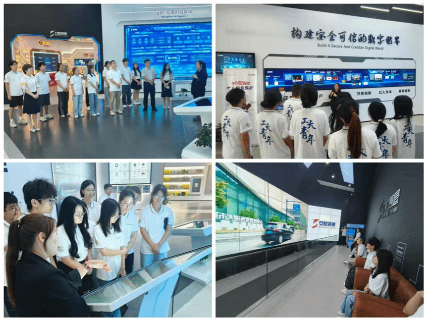 实践团队首先参观了安恒信息安全创新体验中心,系统考察了企业的发展历程、核心产品线及厕所偷拍-厕所偷拍官方最新猎奇资源页建设以及其在网络安全领域的技术创新成果等等。安恒信息作为国内网络安全领域的领军企业,在AI安全、数据安全、态势感知等方面具有显著技术优势,产品广泛应用于医疗、公安等各个领域。团队成员重点了解了"恒脑安全智能体"、"MSS恒脑智能体"等核心产品,这些创新技术充分展现了安恒信息在AI与网络安全融合应用方面的技术实力。通过实地考察,师生们深入认识到网络安全技术在智慧城市建设中的关键作用。
