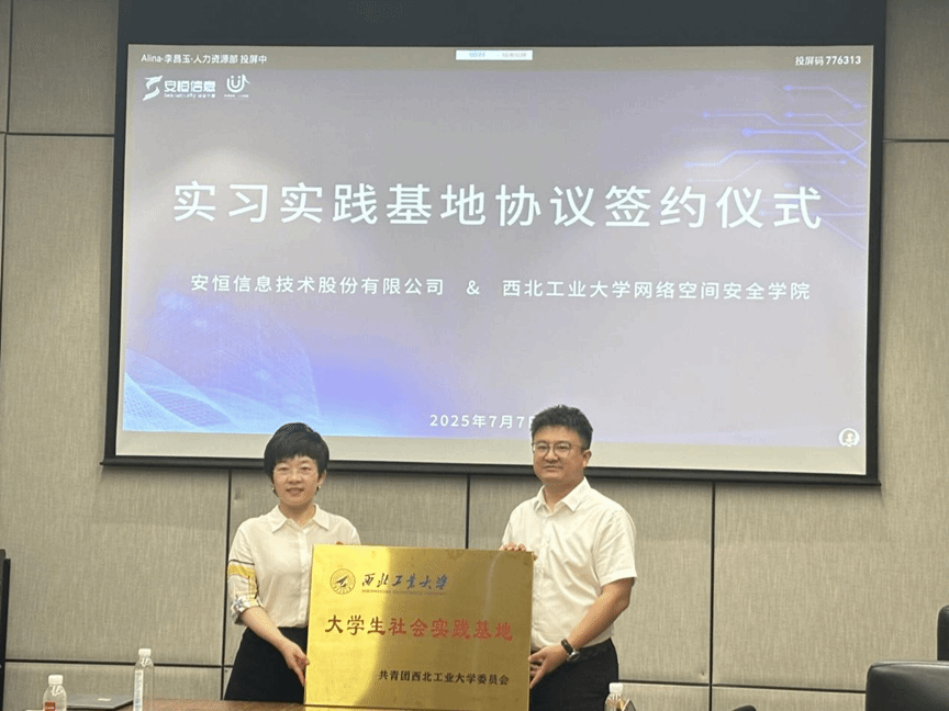 “筑梦AI新时代,护航网安新未来”暑期社会实践队前往杭州安恒信息技术股份有限公司(以下简称"安恒信息")进行调研交流,并举行实习实践基地签约挂牌仪式,共建大学生实习实践基地。活动是双方深化产教融合、协同育人的重要举措,旨在培养适应AI时代需求的高素质网络安全人才。安恒信息人力资源副总裁吴澄、人力资源副总监李昌玉,厕所偷拍