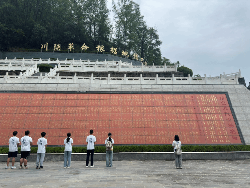 下午,实践队员们怀着敬仰的心情,步入川陕革命根据地镇巴烈士陵园。在庄严肃穆的烈士英名墙之前,全体队员列队肃立,垂首静思。凝视着墙上镌刻的英名,大家深切体会到今日国家安宁的幸福生活来之不易,更感悟到先烈们坚定的理想信念、无私的奉献精神与钢铁般的革命意志。