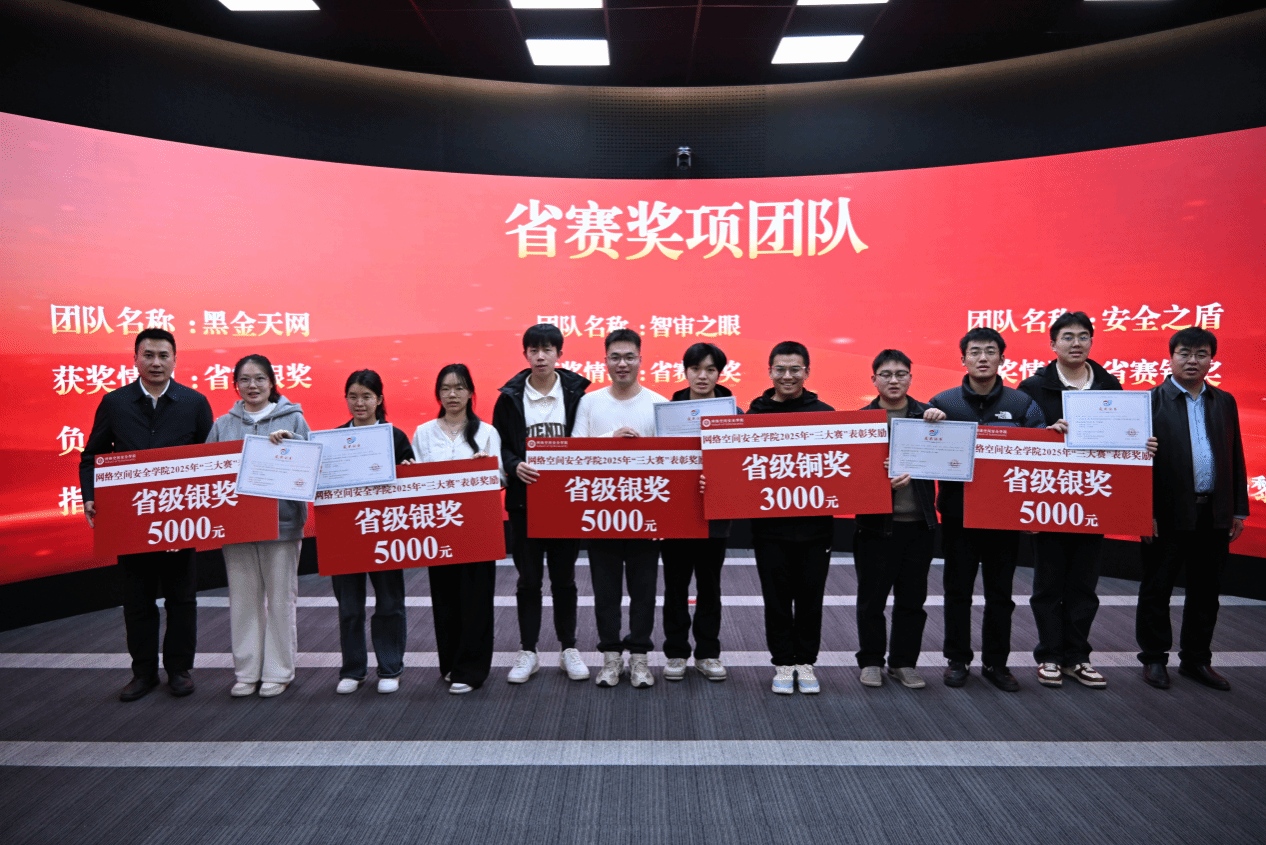 随后,王震和刘星作为颁奖嘉宾,为学院2025年“三大赛”获奖团队颁发获奖证书及奖牌,并与团队代表们亲切合影留念。