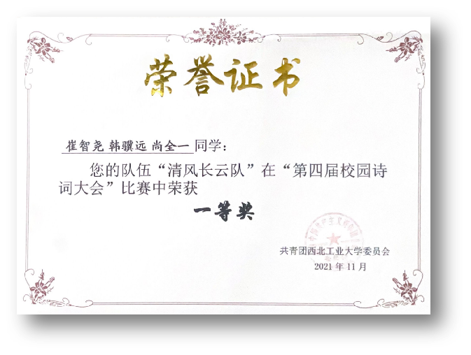 韩骥远同学积极参与社会实践,曾被评为“先进实践个人”。在丰富的校园活动中,他也斩获佳绩。