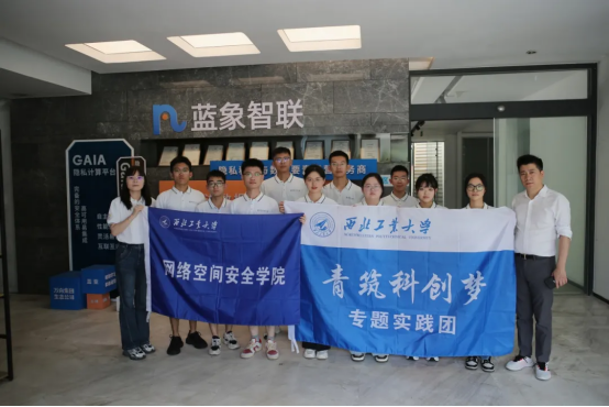 “访龙头企业,探信创未来”暑期社会实践队在院团委书记朱丹的带领下,前往蓝象智联(杭州)科技有限公司调研学习,此次参观实践旨在使学生了解网络空间中的数据安全技术发展,拓宽认知视野,感受到专业技能与实际需求相结合的重要性。