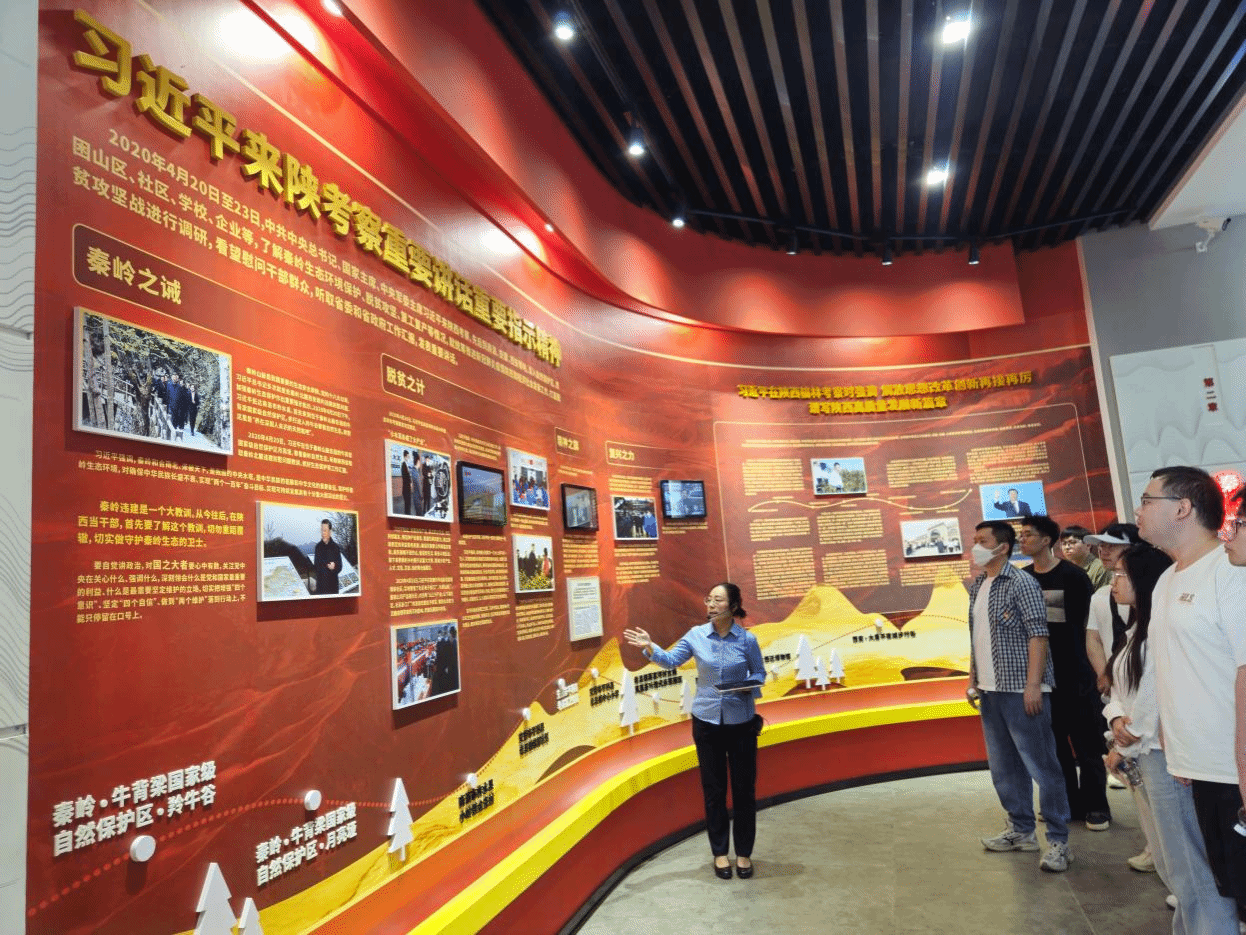 随后,师生依次参观了“秦岭之诫”“秦岭之殇”“秦岭之治”“以案示警”“大美秦岭”五大展厅。通过违建别墅拆除实景对比图、生态破坏数据统计及涉案人员忏悔实录,深刻领悟习近平总书记关于秦岭保护“国之大者”的深远意义,从政治纪律、生态责任双重角度敲响警钟。