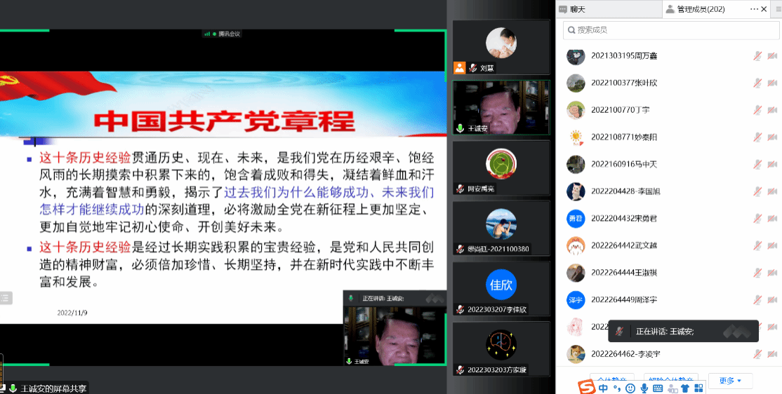 班子、师生党员、发展对象、入党积极分子共二百余人参加党课,根据疫情防控要求,党课采取线上形式召开。