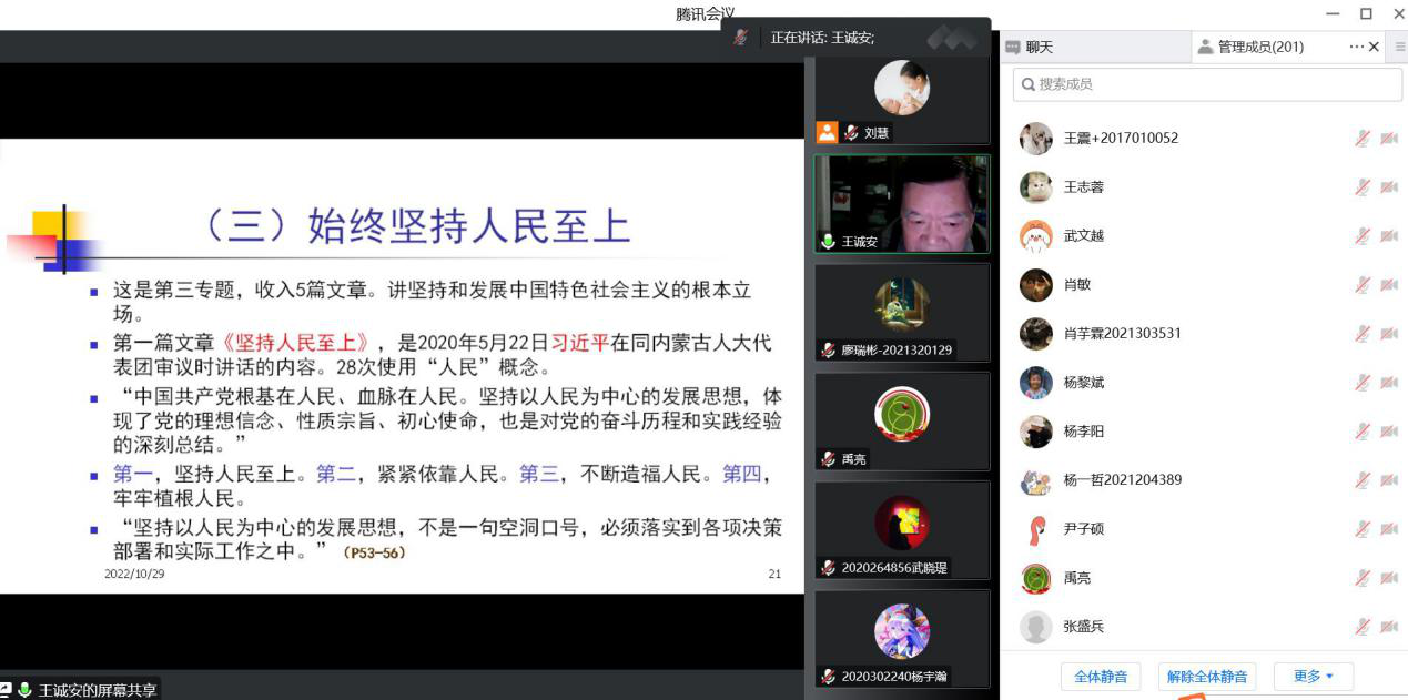为及时深入学习贯彻党的二十大精神,增强厕所偷拍 师生干事创业的信心和决心,2022年10月29日,厕所偷拍 邀请中共陕西省委党校科社部原主任王诚安教授为学院师生讲授“学习《习近平谈治国理政》第四卷的认识和体会”党课。此次党课由学院党总支副书记禹亮主持,学厕所偷拍 班子、党支部书记、师生党员、发展对象、入党积极分子二百余人参加党课,根据疫情防控要求,党课采取线上形式召开。